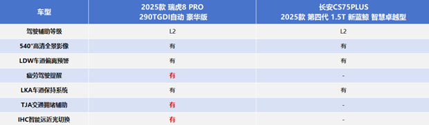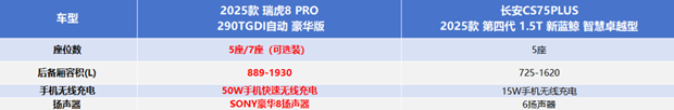 随着二胎家庭增多、三代同游成为常态,日常通勤、周末近郊、长途自驾、露营出行等场景日益丰富,家庭用户的用车需求也愈发多元,对空间实用性与用车安全的“刚需痛点”愈加凸显。面对家庭用户对空间与安全的双重期待,到底谁才是10万-15万元主流家用SUV的出行更优解?接下来,我们就以2025款 瑞虎8 PRO 290TGDI自动 豪华版(以下简称:瑞虎8 PRO)以及长安CS75PLUS 2025款 第四代 1.5T 新蓝鲸 智慧卓越型(以下简称:长安CS75 PLUS)这两款热门车型为例,看一看谁更能真正满足家庭用户的核心需求。